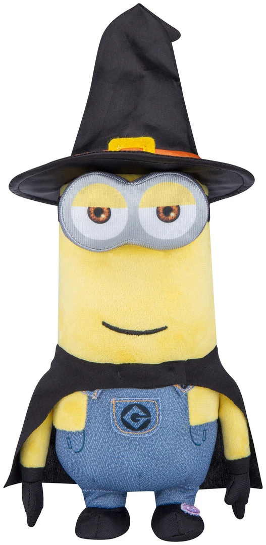 Entertain your guests with the familiar face of Kevin the Minion from Despicable Me. Kevin waddles to the beat of a fun song in his witch costume. This animated plush character is perfect for indoor Halloween decorating or as a thrilling gift.