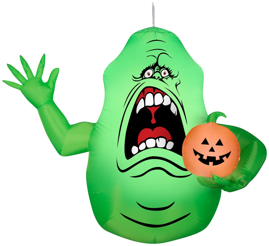 There’s something strange in your neighborhood! This hanging Airblown® Slimer looks spooky as he greets guests. It comes with everything needed for easy outdoor setup. Just plug it in, hang it up and watch the magic unfold. Display this freaky Halloween decoration as a standalone or combine it with other Airblown® Inflatables to create a custom scene. It’s also perfect as an indoor Halloween decoration for parties and celebrations.