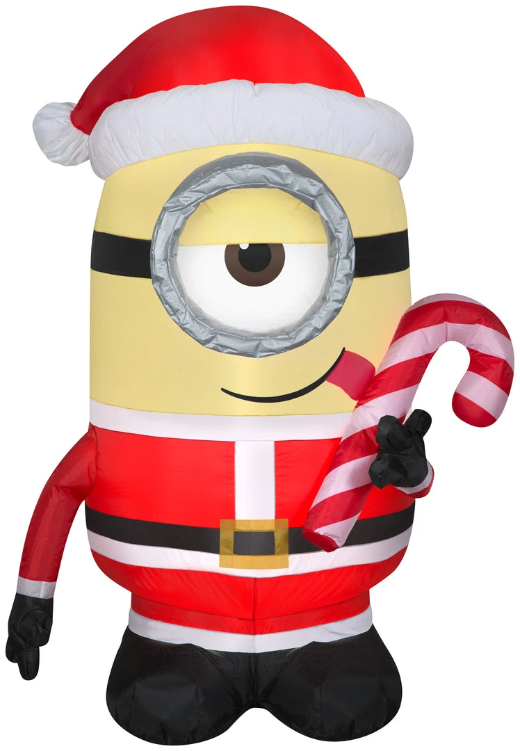 Fans of Minions will love this Airblown® Inflatable Minion Stuart licking a candy cane! Dressed in a Santa suit, this hilarious Stuart inflatable makes an eye-catching addition to your Christmas decorations. Setup is super simple. Just plug it in, stake it down and watch the magic unfold. Display this whimsical Minions Christmas inflatable as a standalone or combine it with other Airblown Inflatables to create a custom scene. Includes everything needed for easy outdoor setup.. Dimensions: 53.94″x29.53″x39.37″