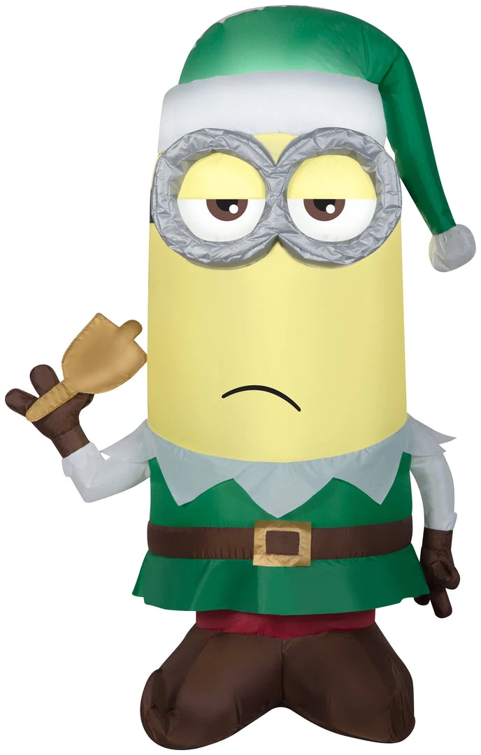 Delight guests and passersby with Airblown Inflatable Kevin decked out for the season in a green elf outfit! Accented with a gold bell, this Minions inflatable is super simple to set up. Just plug it in, stake it down and watch the magic unfold. Display this whimsical holiday decoration as a standalone or combine it with other Airblown characters to create a custom scene. Includes everything needed for easy outdoor setup.