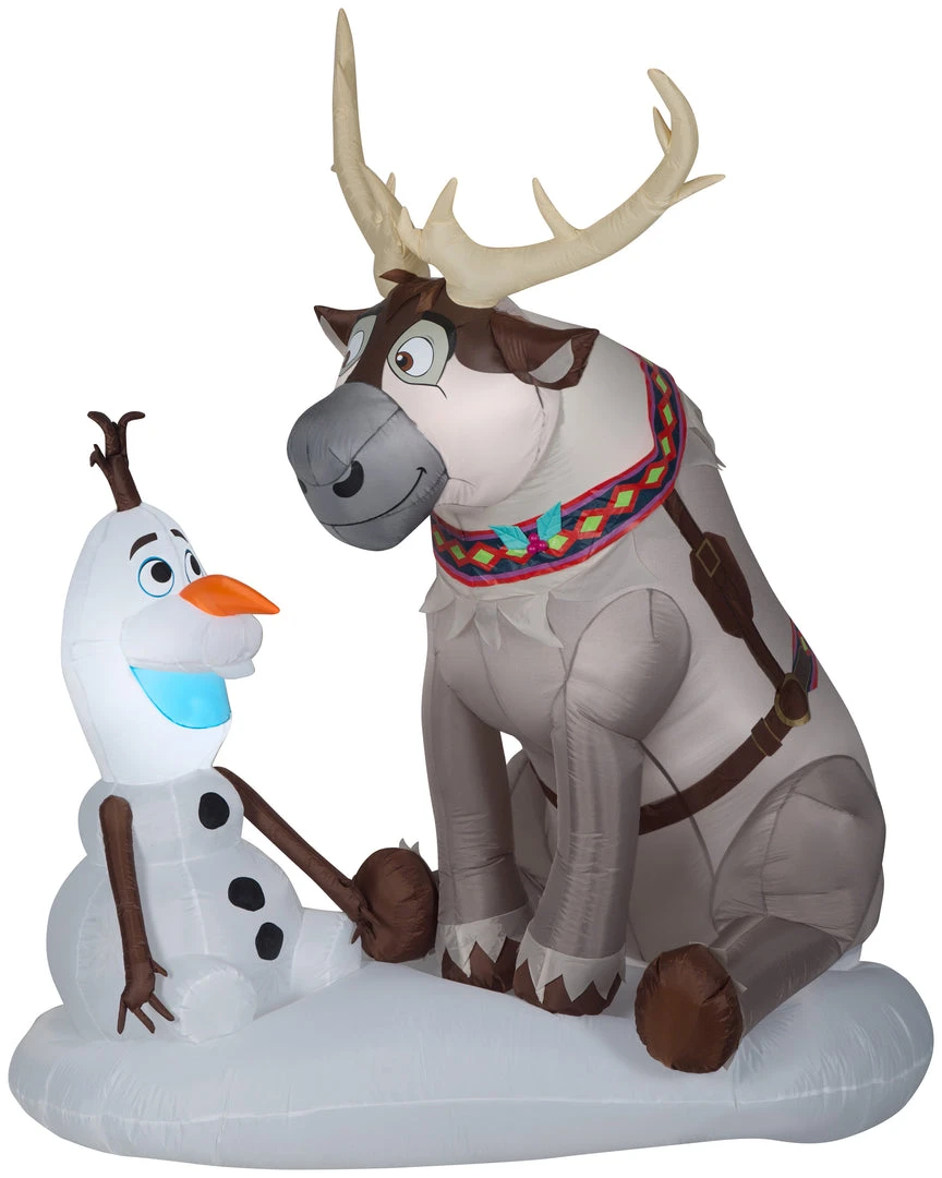 Deck the yard with an Airblown® Inflatable featuring Olaf and Sven sitting on a bed of snow! Our Frozen inflatable makes an eye-catching addition to your outdoor Christmas decorations. Setup is super simple. Just plug it in, stake it down and watch the magic unfold. Includes everything needed for easy outdoor setup.